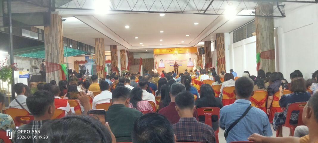 Nias Selatan//Detik.sbs – Bupati Nias Selatan (Nisel) gelar Open House dan Syukuran Natal 2025 dan Tahun Baru 2026 di Aula Rumah Dinas Bupati, Jalan Pancasila No. 1, Kelurahan pasar Teluk dalam, Ibukota Kabupaten Nias Selatan, Senin 05/01/2026.