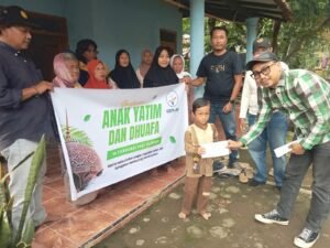 Santunan untuk anak yatim dan kaum dhuafa diberikan secara simbolis oleh Ketua Forum Geplak, Ali Zaedan, bersama jajaran pengurus di halaman rumah salah satu pengurus di kelurahan Bojongsari Indramayu.