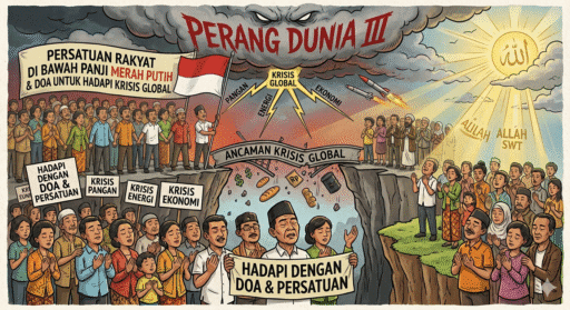DETIK.SBS || Dunia hari ini sedang tidak baik-baik saja. Gemuruh konflik di Timur Tengah antara poros AS-Israel melawan Iran bukan sekadar berita mancanegara di layar kaca; ia adalah alarm peringatan bagi dapur dan lampu di rumah-rumah kita. Bayang-bayang Perang Dunia III membawa ancaman nyata: krisis pangan, energi, dan guncangan ekonomi yang siap menerjang batas negara.