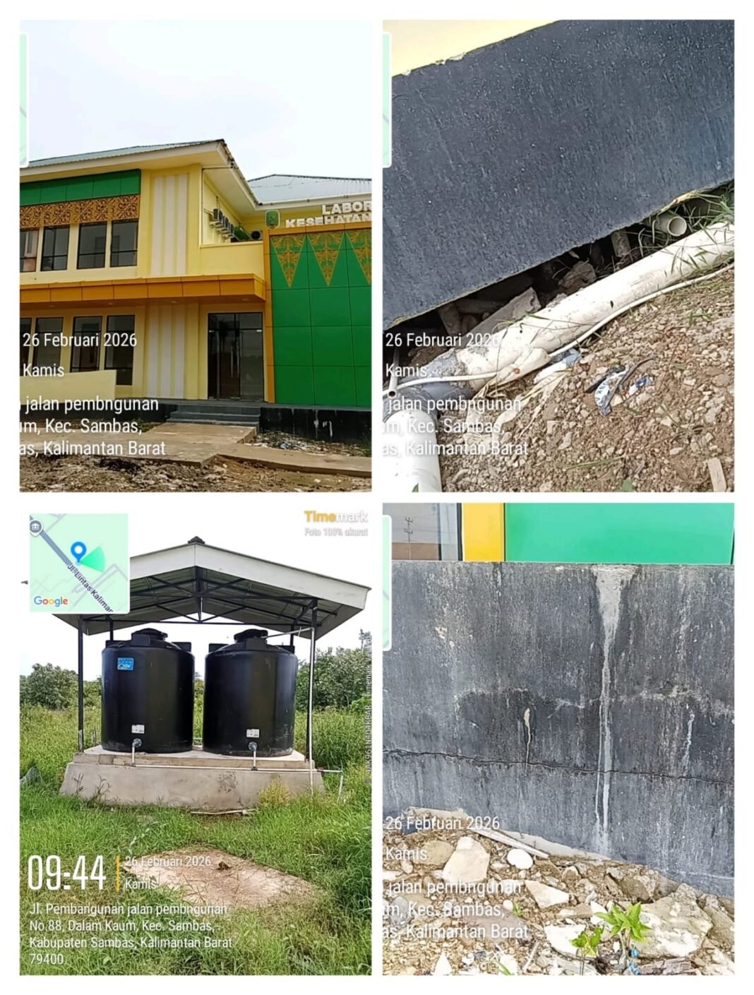 Proyek pembangunan laboratorium milik Dinas Kesehatan Kabupaten Sambas Rp. 11 M yang digarap CV Tujuh Enam Sarana, tampak dikerjakan asal-asalan dan tidak mencerminkan unsur kualitas dan kwantitas.